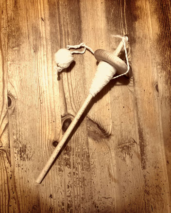 Die Kursteilnehmer:innen lernen den Weg vom Schaf bis zum fertigen Wollfaden kennen. Gemeinsam verwandeln wir mit Hilfe einer Handspindel Fasern in fertiges Garn.